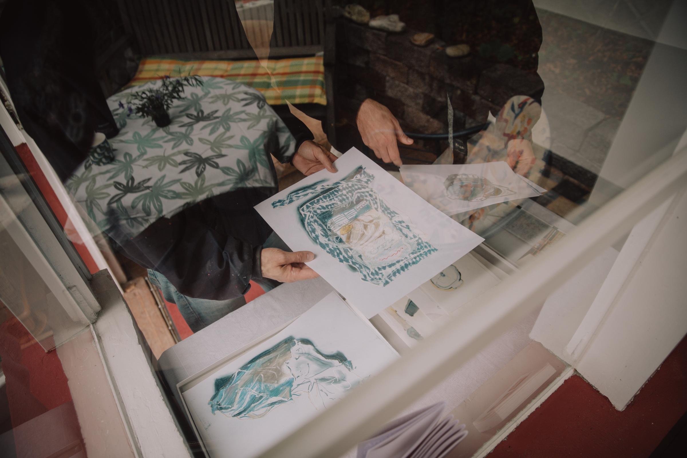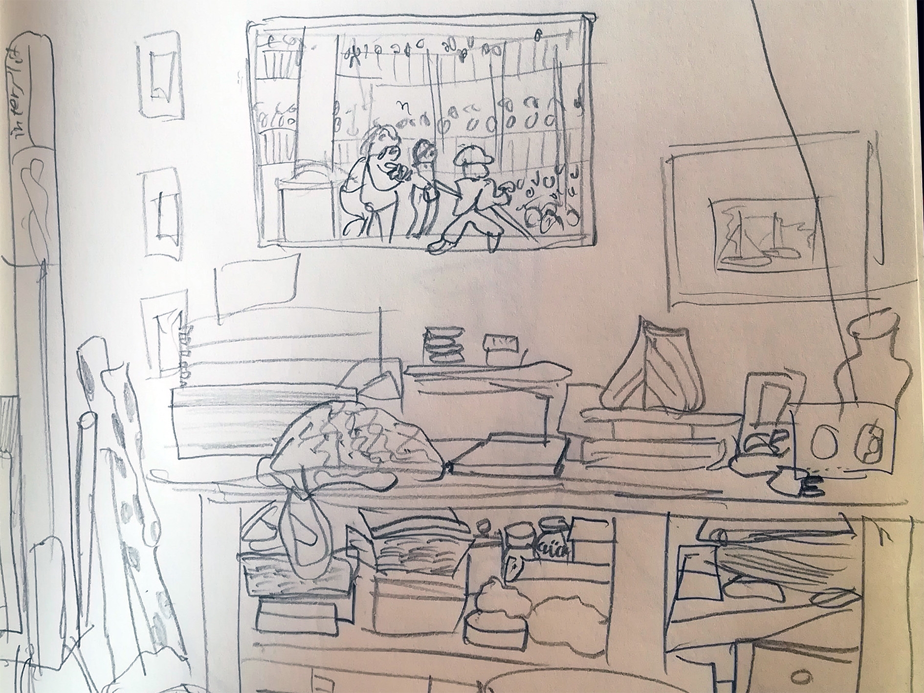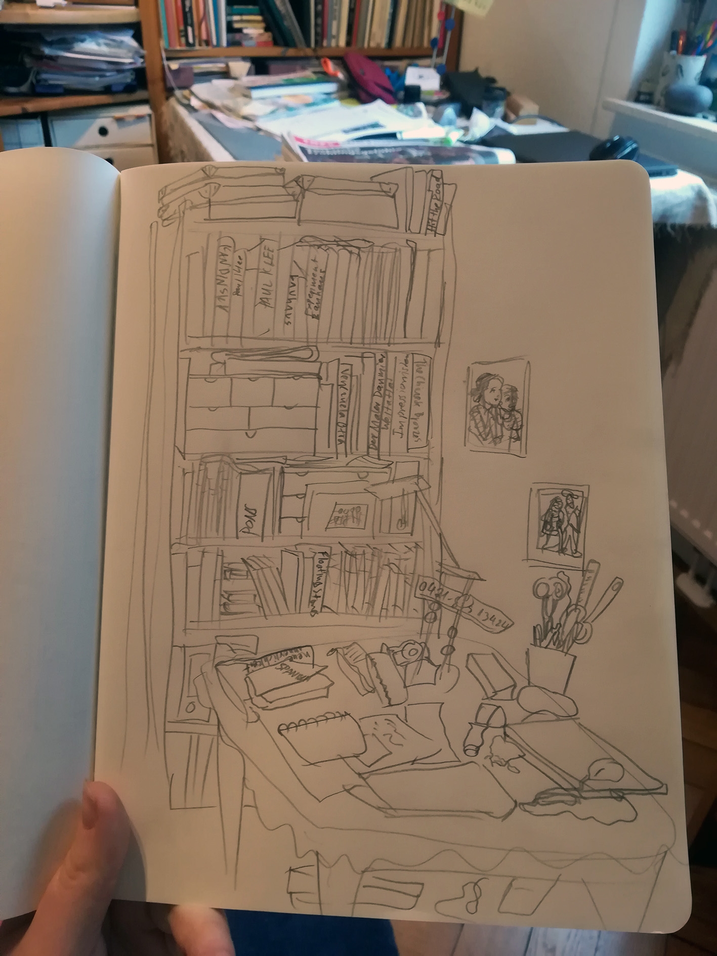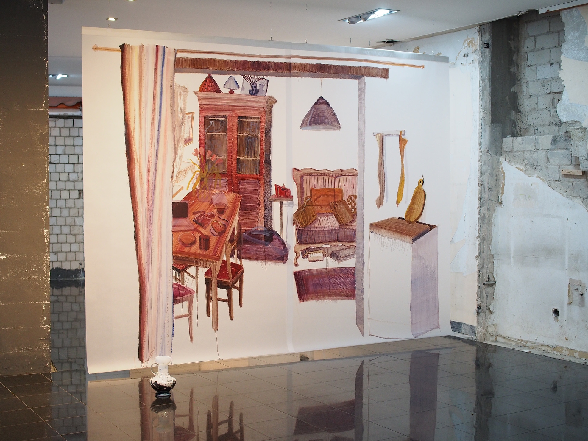 Für die anfertigung der Skizzen hat sie viele Stunden alleine in den Privaten Räumlichkeiten der Bewohner\*innen verbracht. Im Atelier hat sie diese zum Bildmotiv zusammengetragen, bevor sie es direkt auf die Fassade gemalt hat. So ergibt sich eine besondere künstlerische Verschränkung des Privaten und des Öffentlichen.
