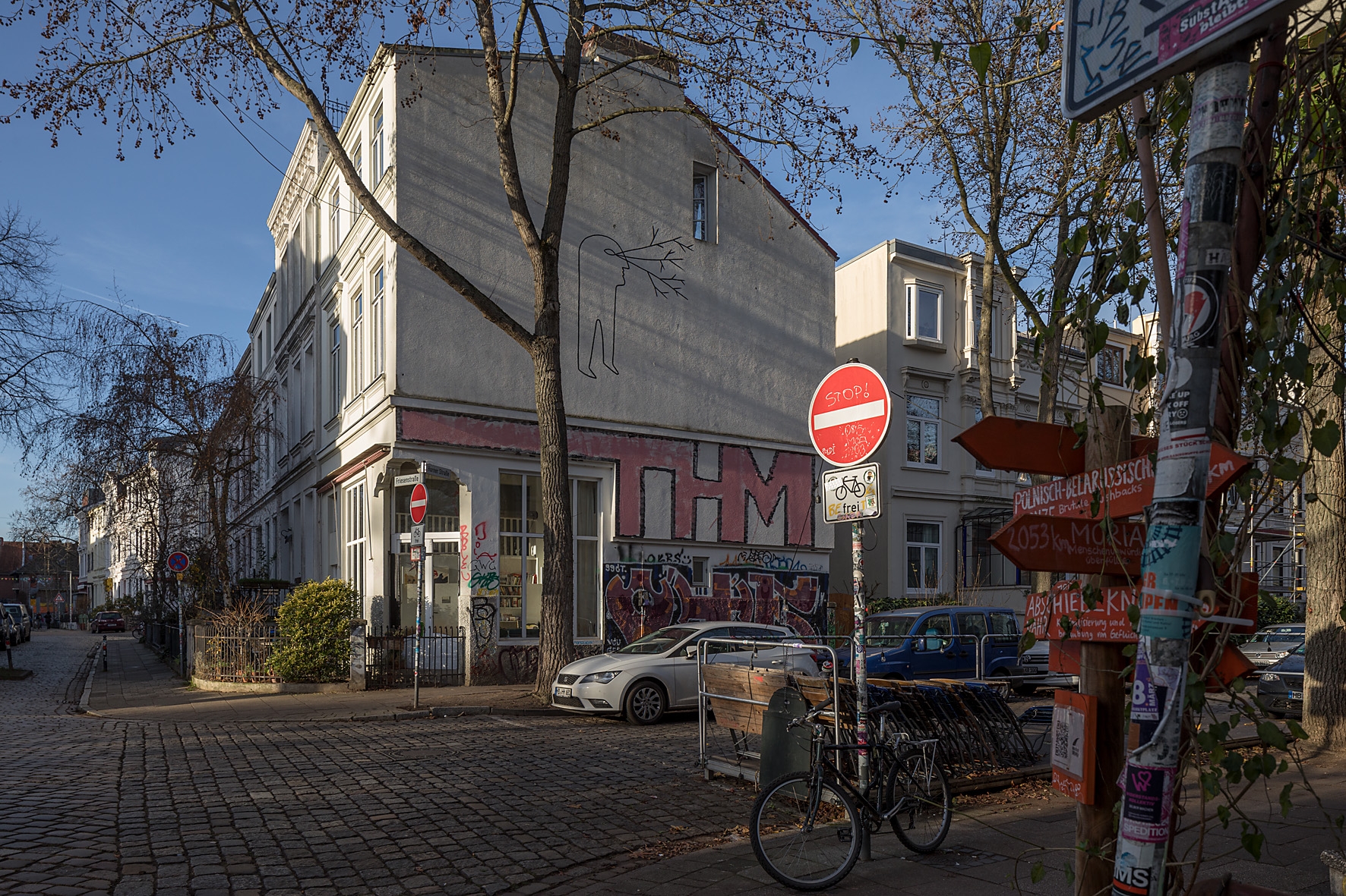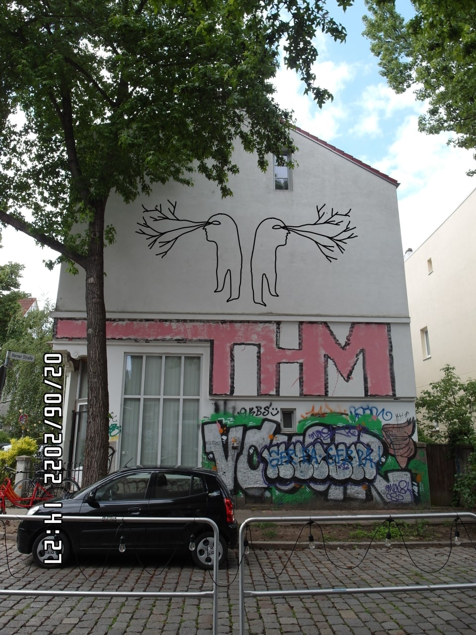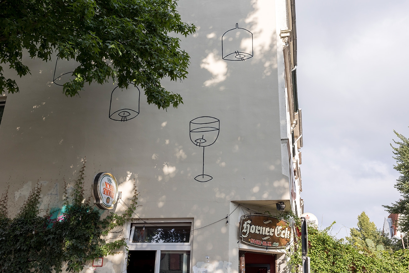 Im Sommer 2022 malte Esther Adam zwei Wandbilder an der Kreuzung Friesenstraße / Horner Straße. Eines auf die Fassade der Eckkneipe Horner Eck, das andere auf die gegenüberliegende Hausfassade.