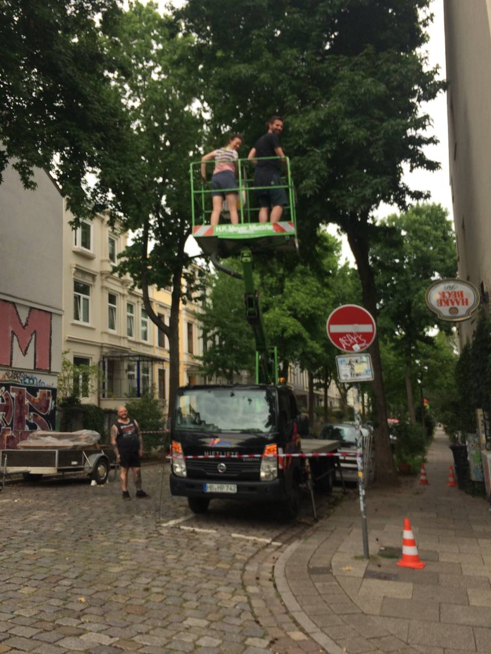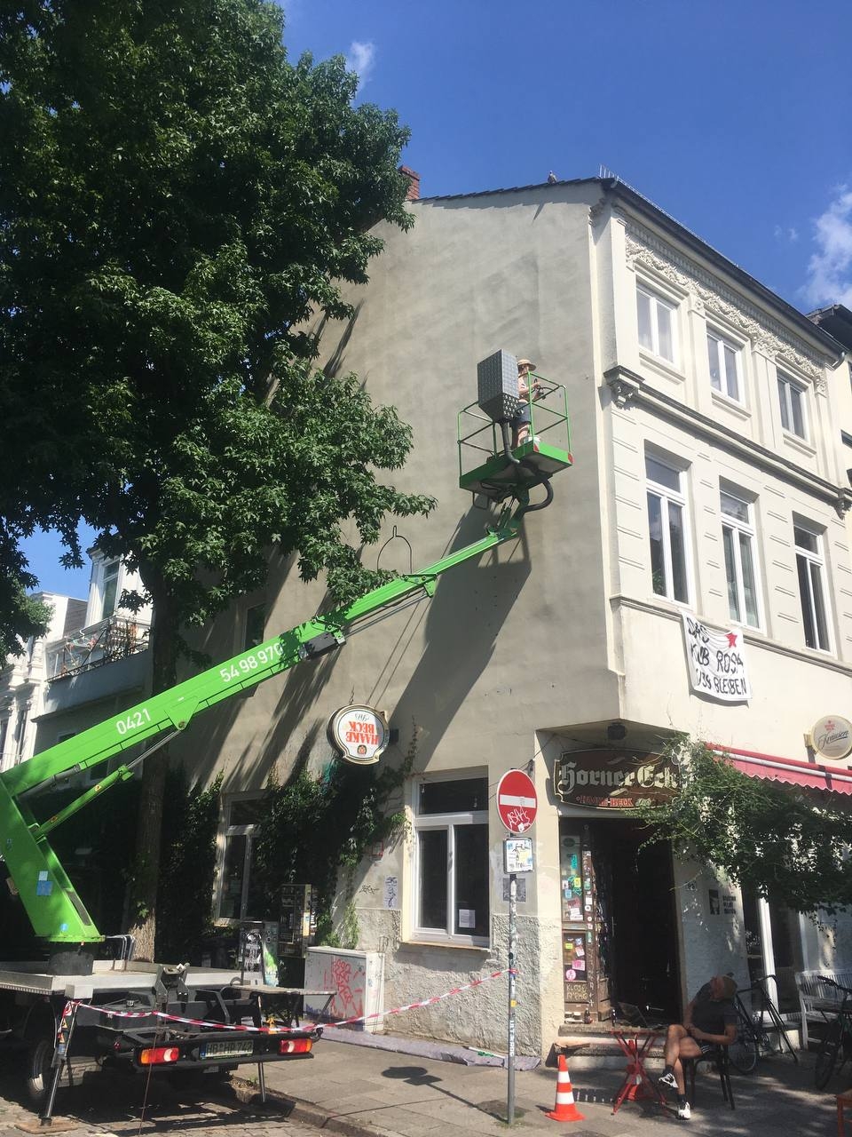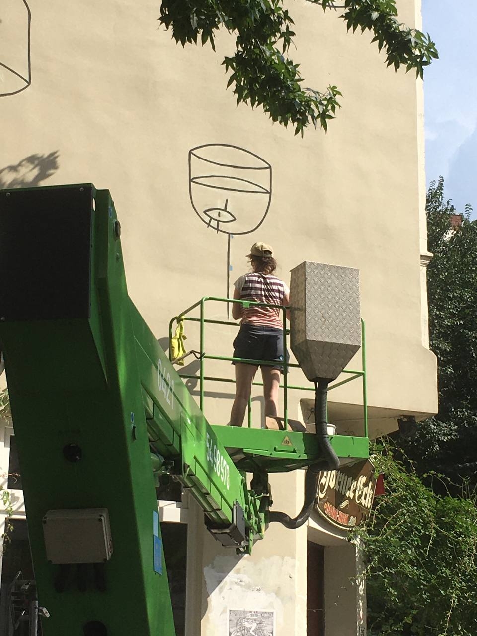 Im Sommer 2022 malte Esther Adam zwei Wandbilder an der Kreuzung Friesenstraße / Horner Straße. Eines auf die Fassade der Eckkneipe Horner Eck, das andere auf die gegenüberliegende Hausfassade.
