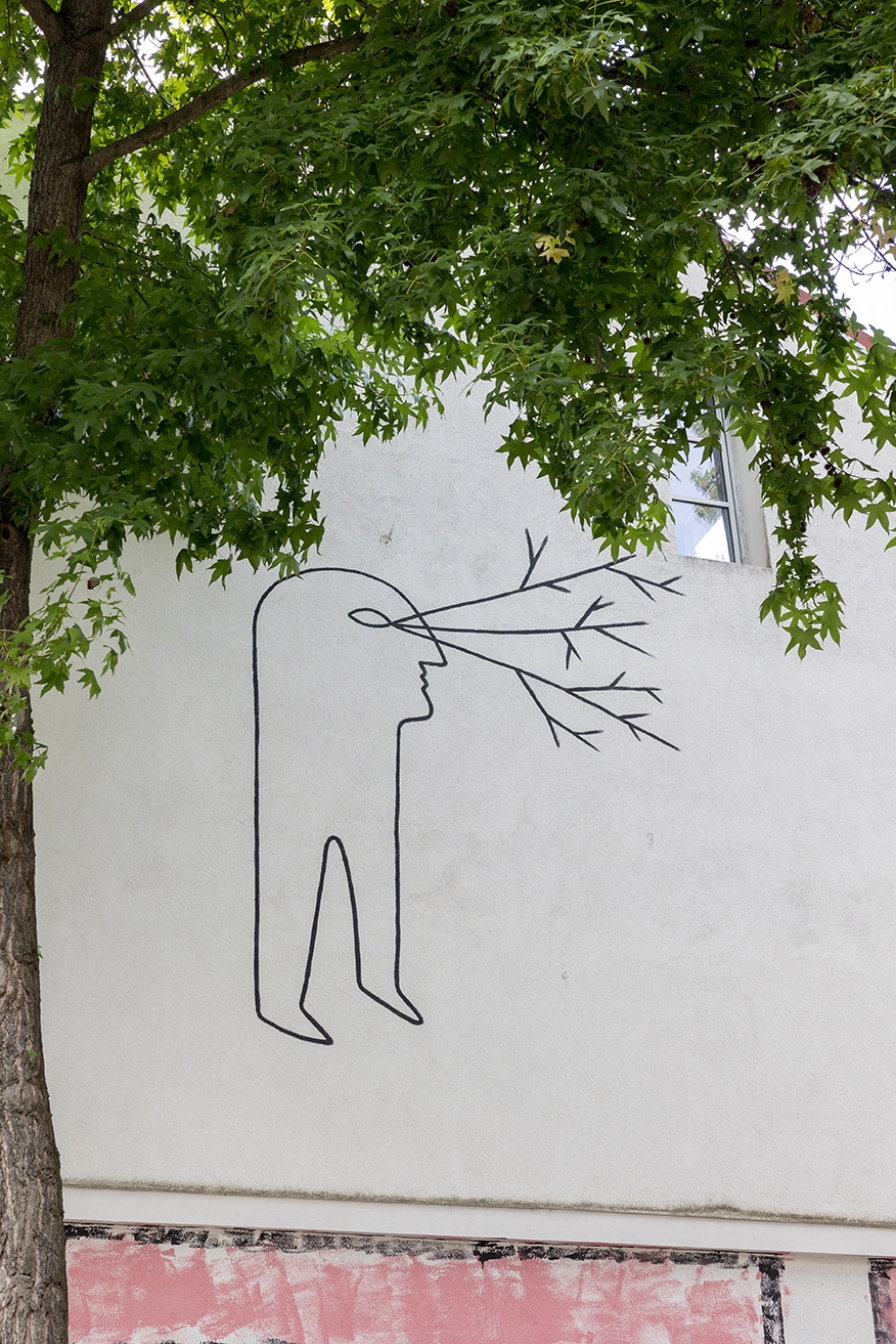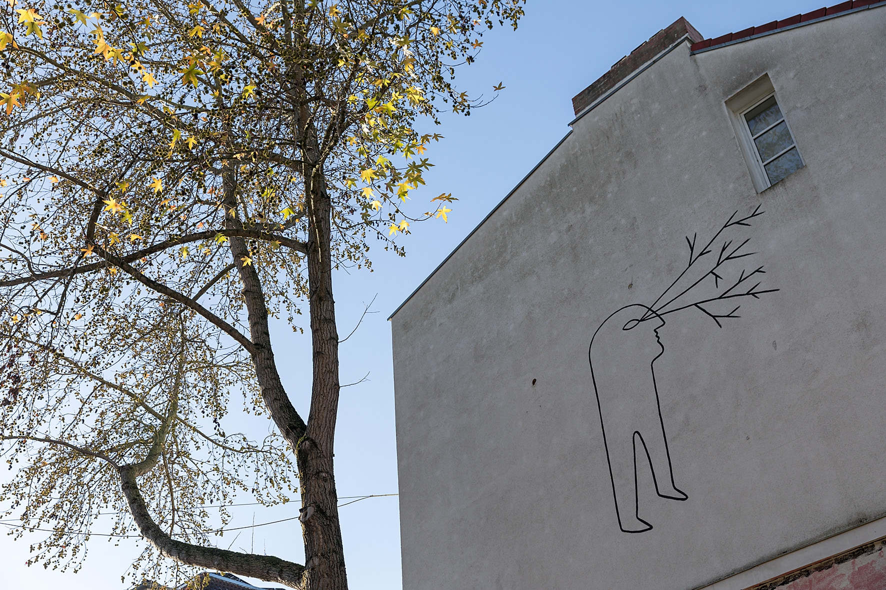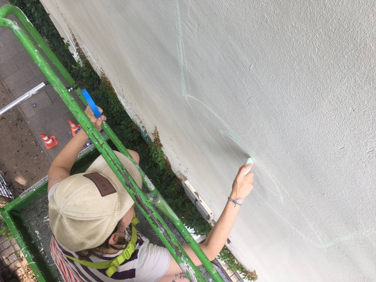 In der Entwicklung und Umsetzung der Wandbilder achtete Esther Adam darauf, die umliegende soziale Situation zu berücksichtigen und zu kommentieren, mit ihrer Gestaltung einen ausdrucksstarken und gleichzeitig behutsamen Eingriff in die Umgebung vorzunehmen. Das untere Stockwerk der beiden Gebäudefassaden und die hier befindlichen Graffitis, Plakate und Pflanzen ließ sie unberührt.