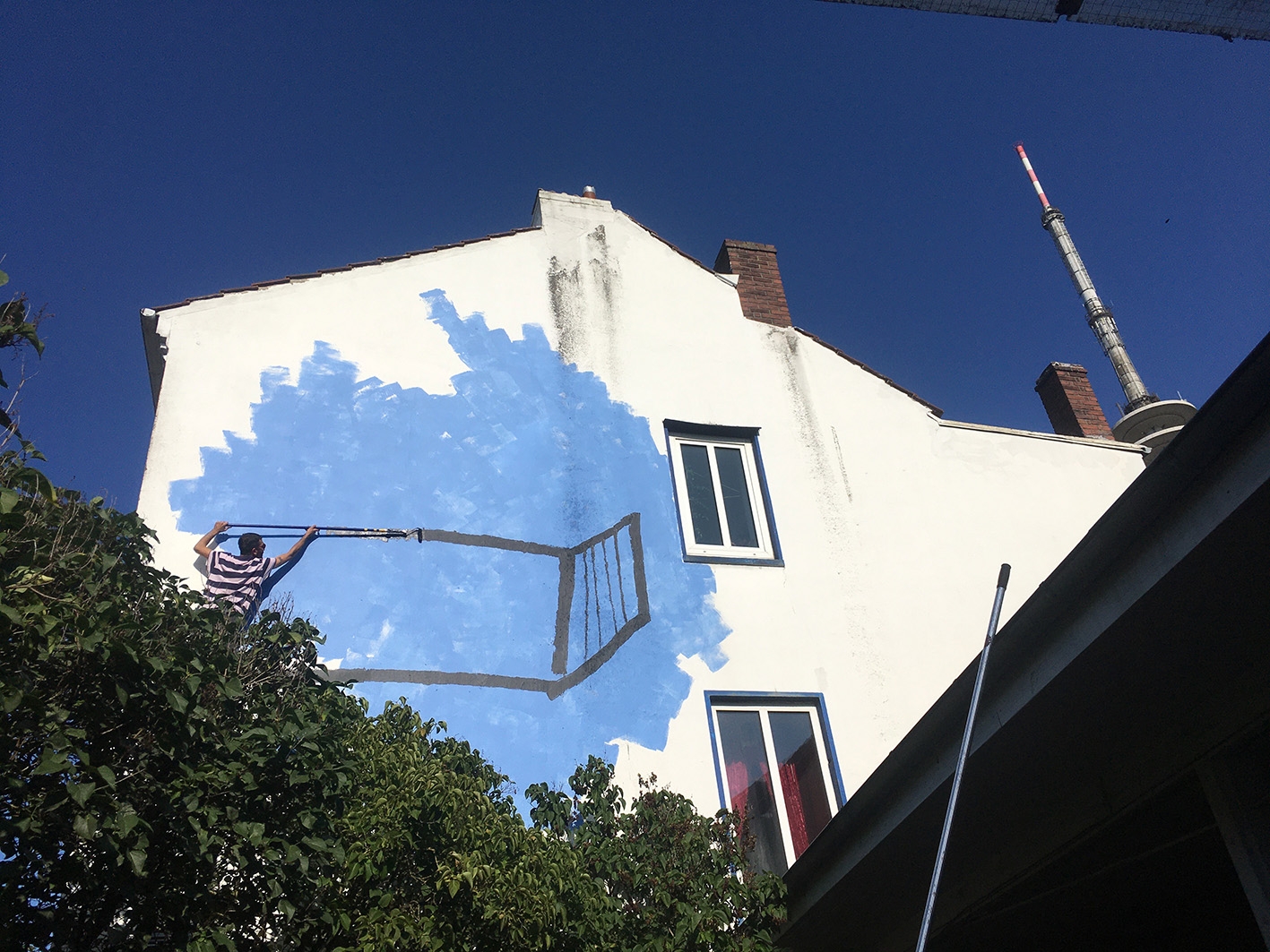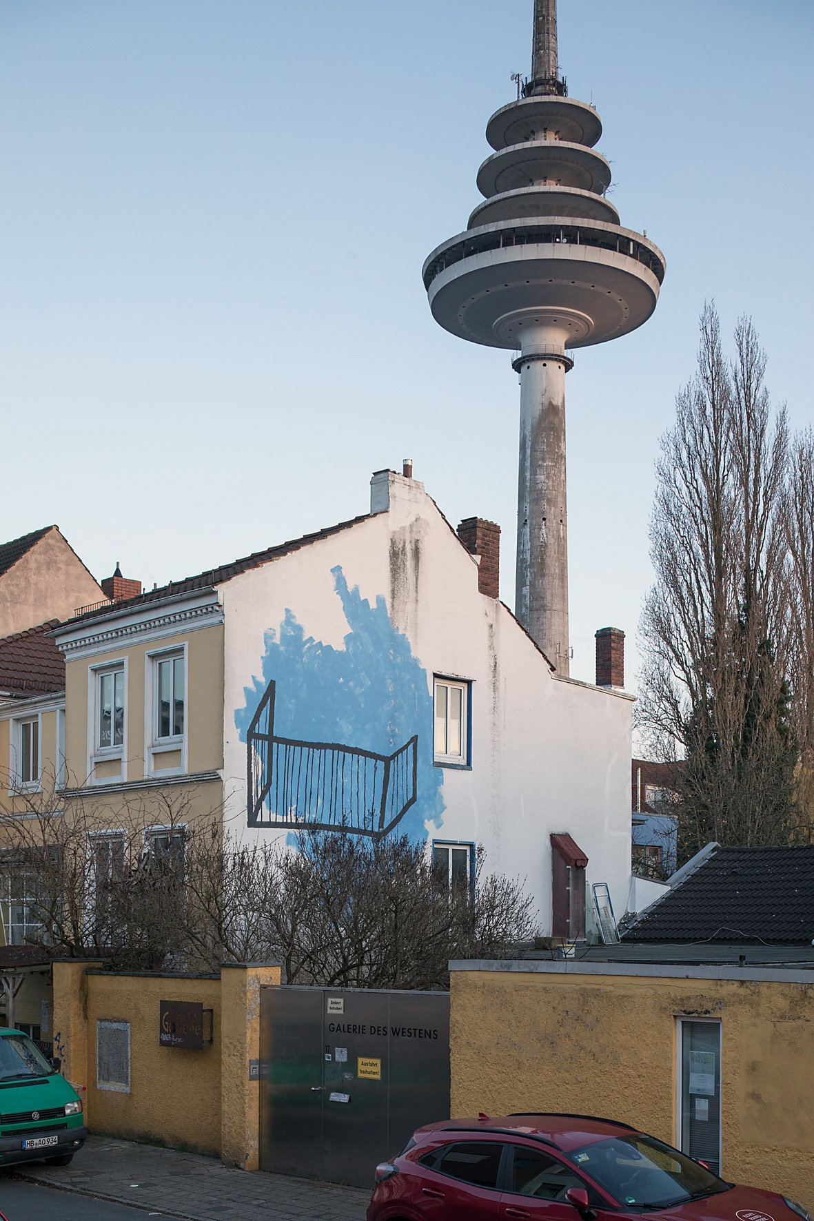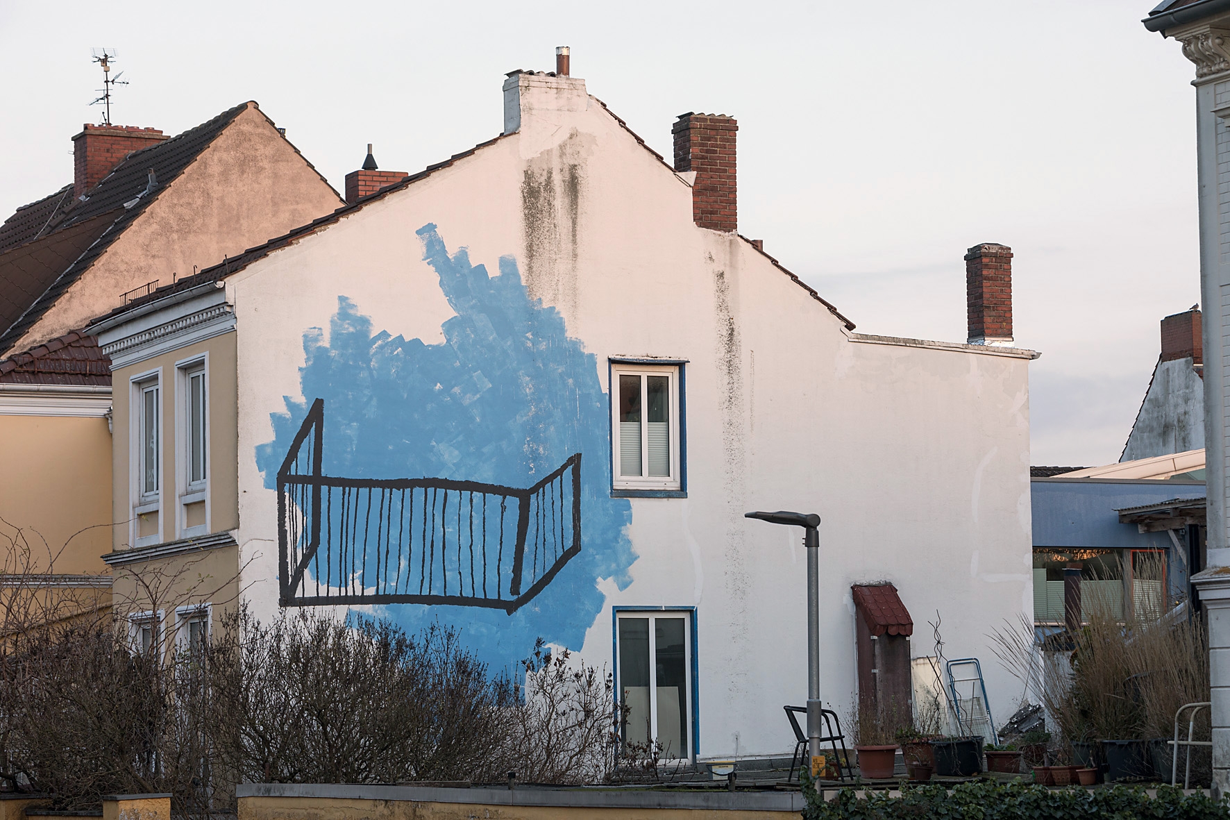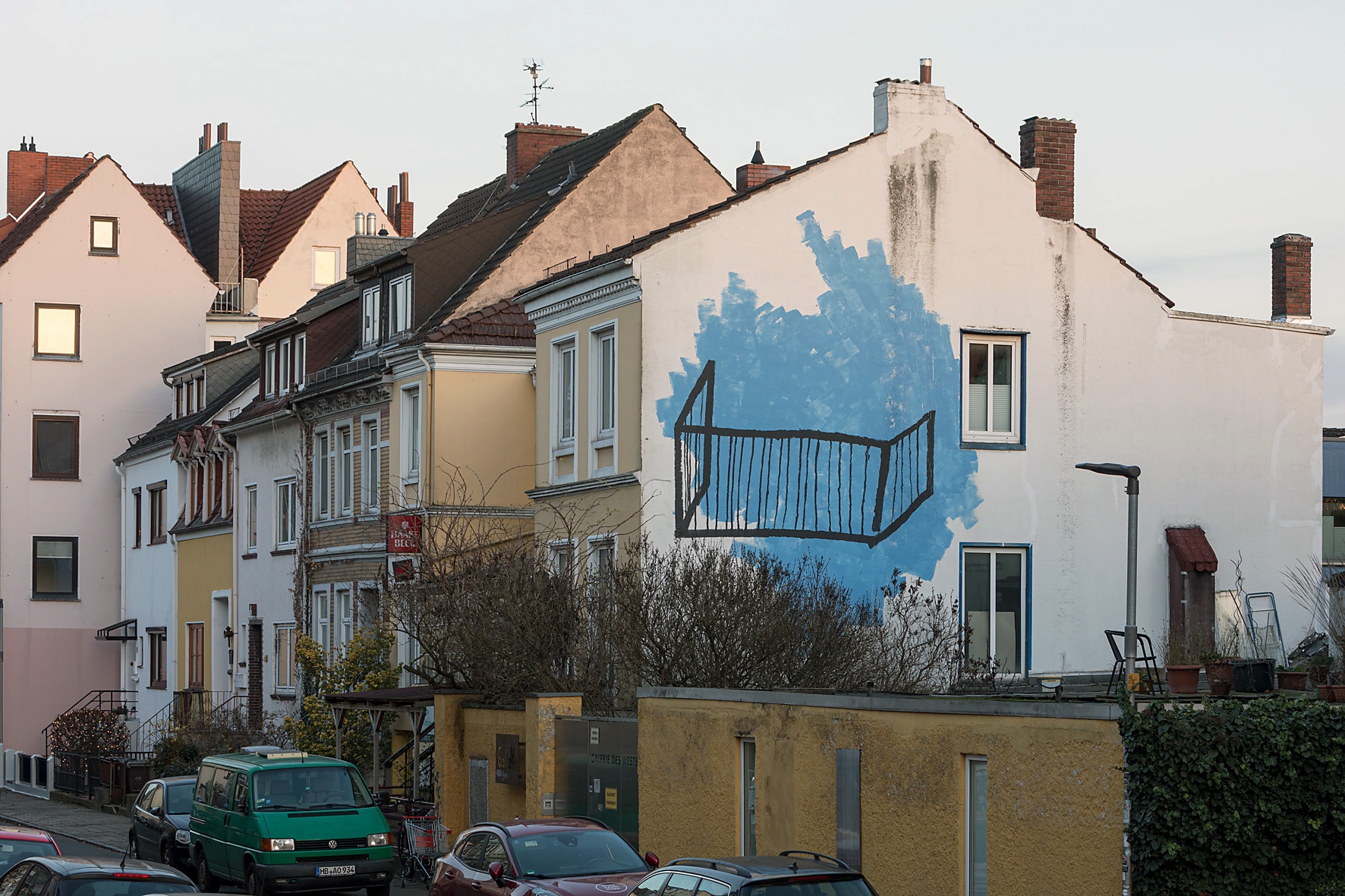 Wandbild Blauer Balkon von Lisa Sinan Mrozinski im innenhof der GaDeWe in Bremen Walle.