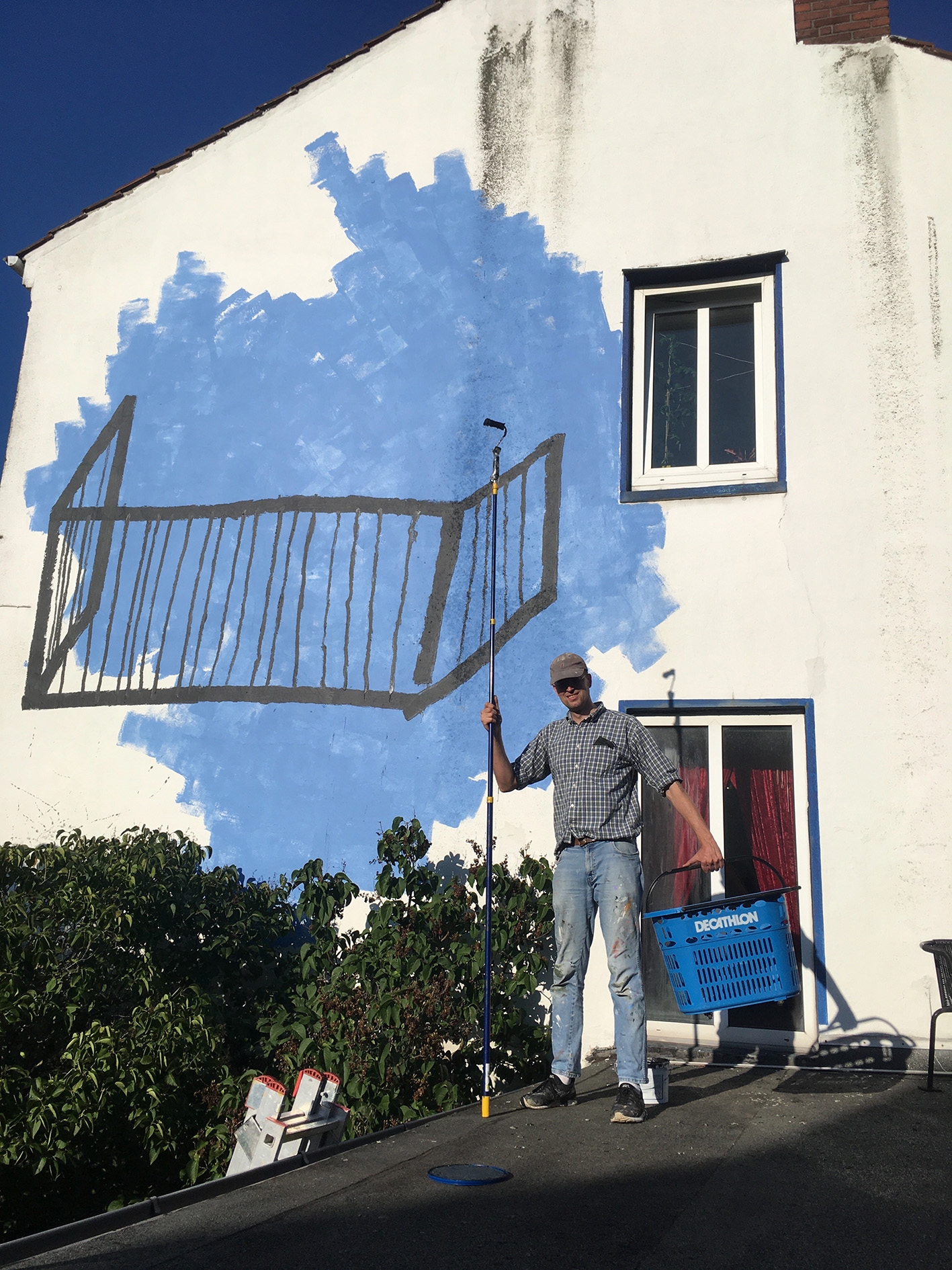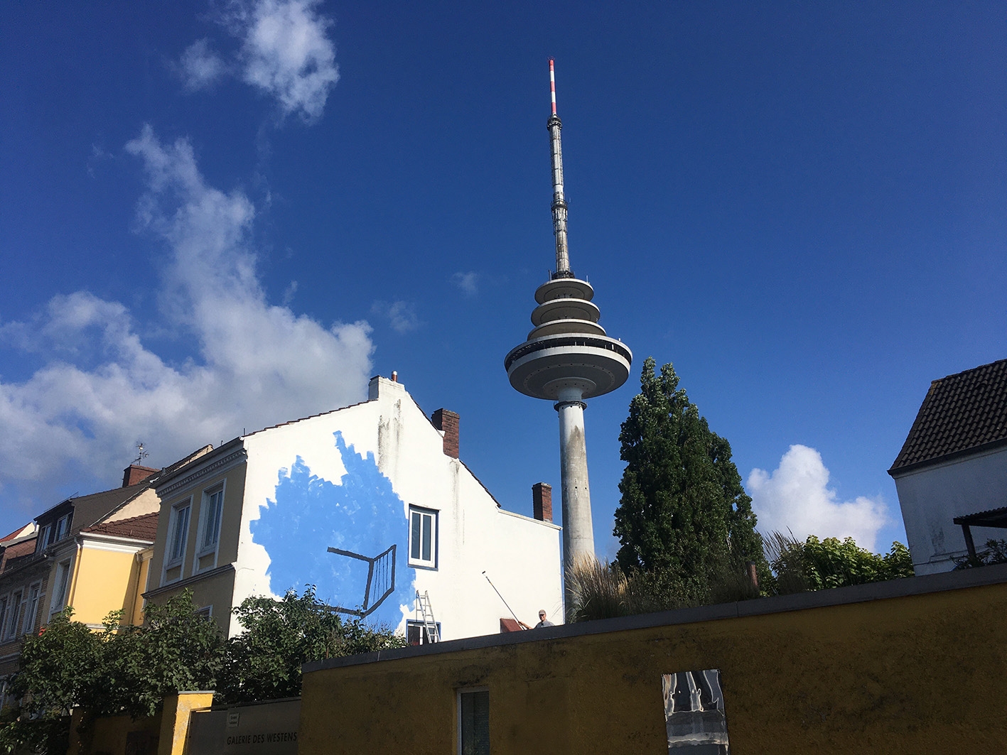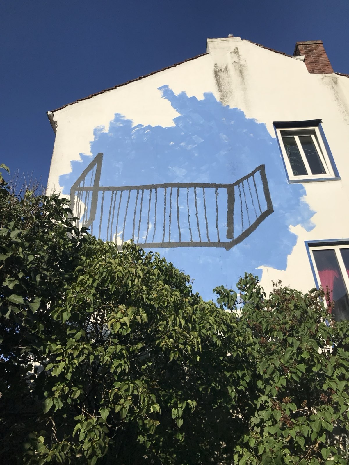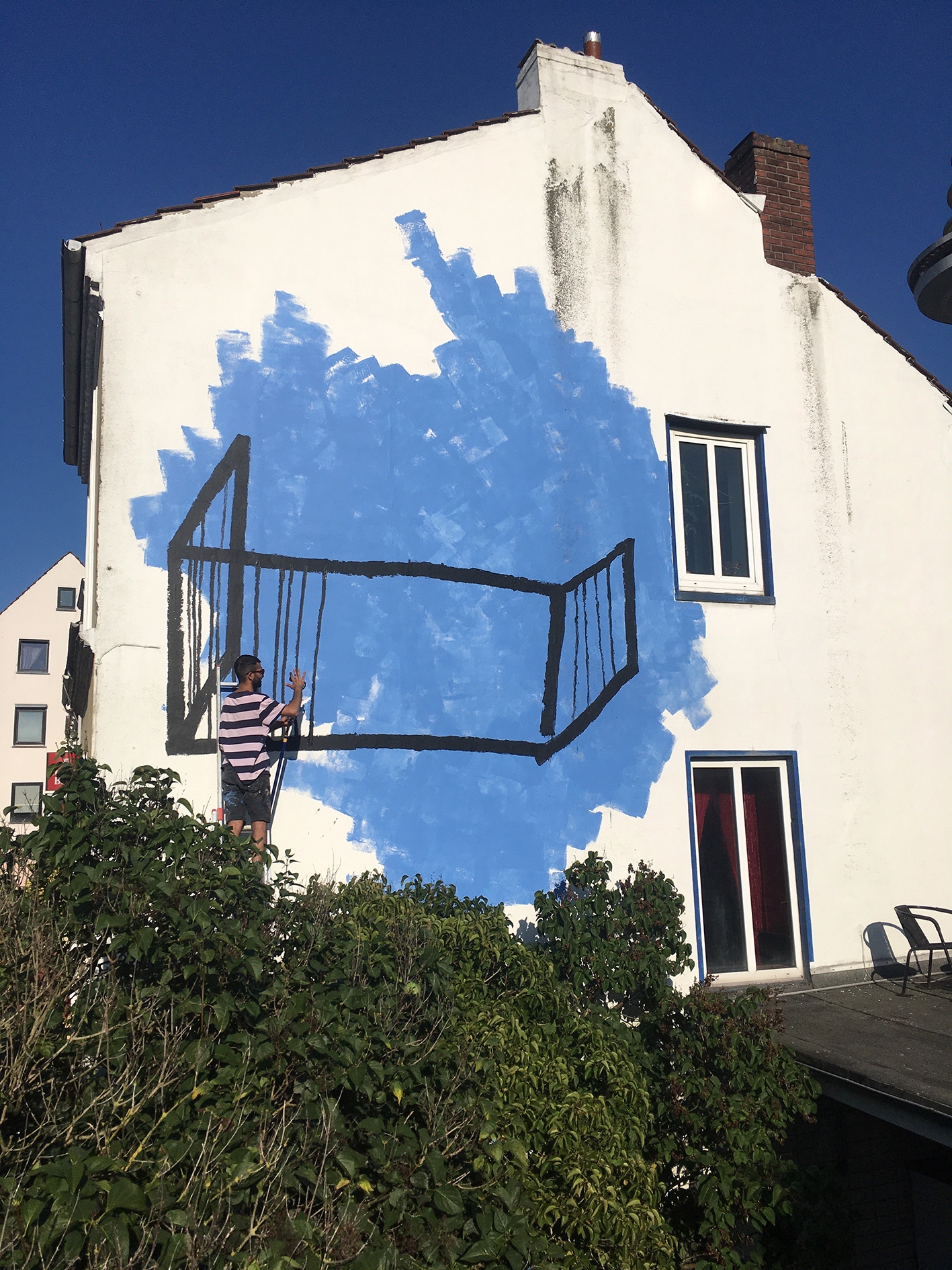 Wandbild Blauer Balkon von Lisa Sinan Mrozinski im innenhof der GaDeWe in Bremen Walle.