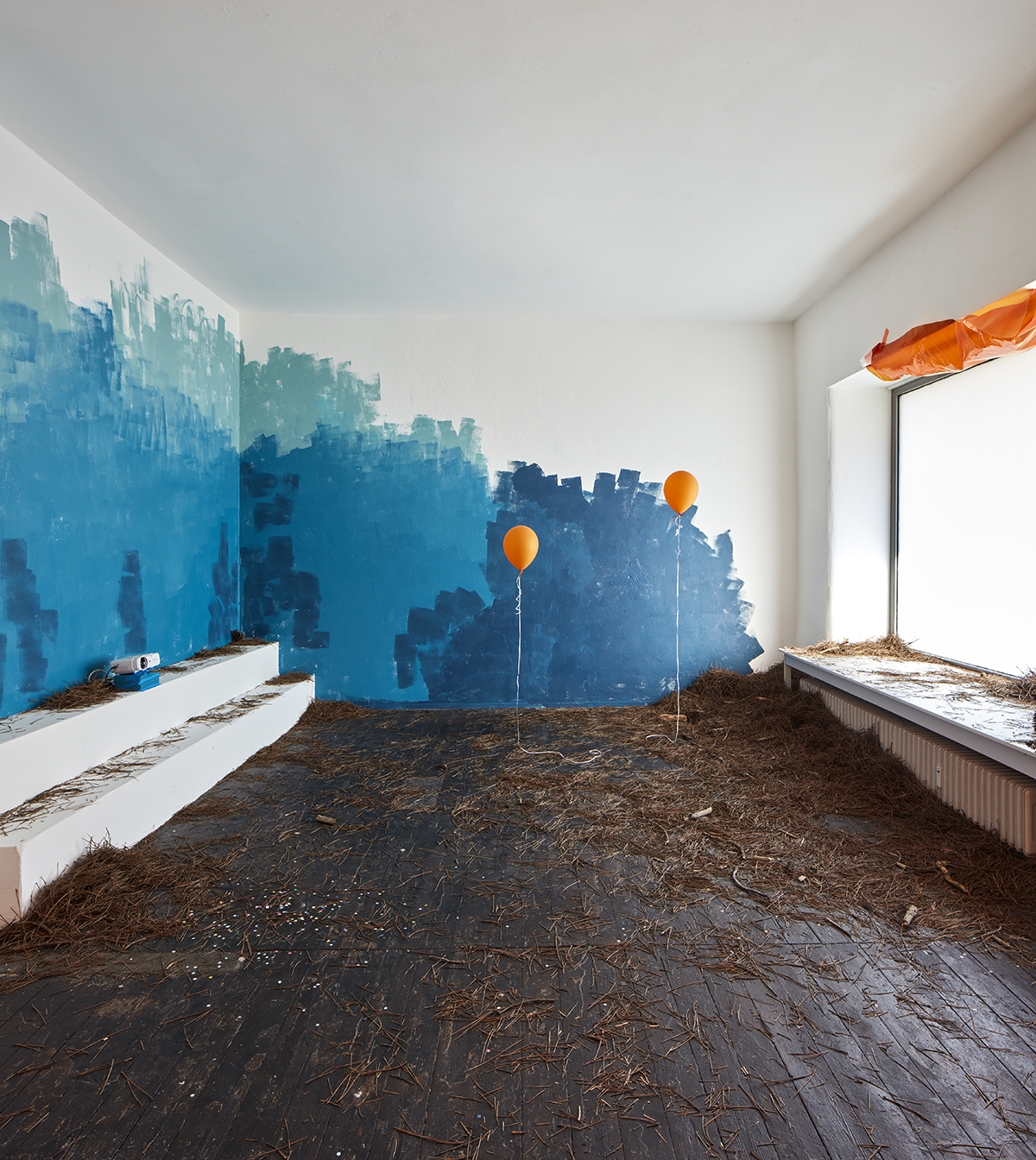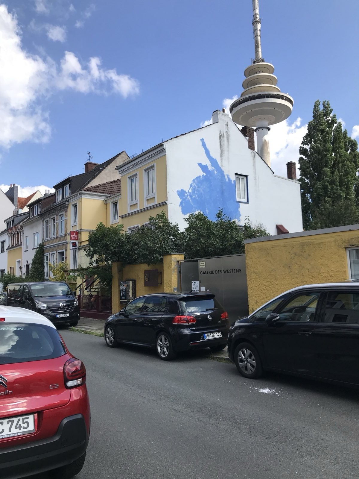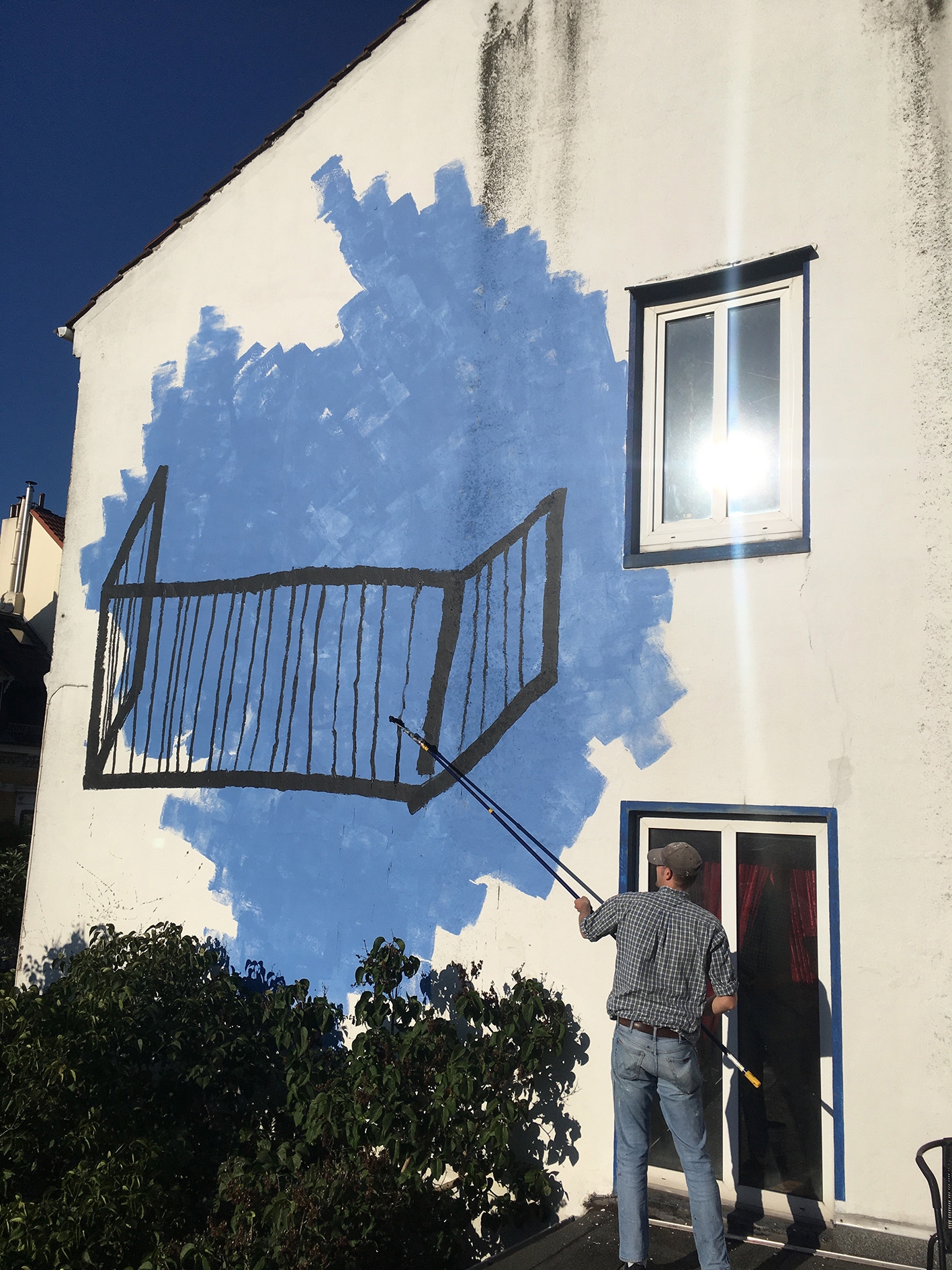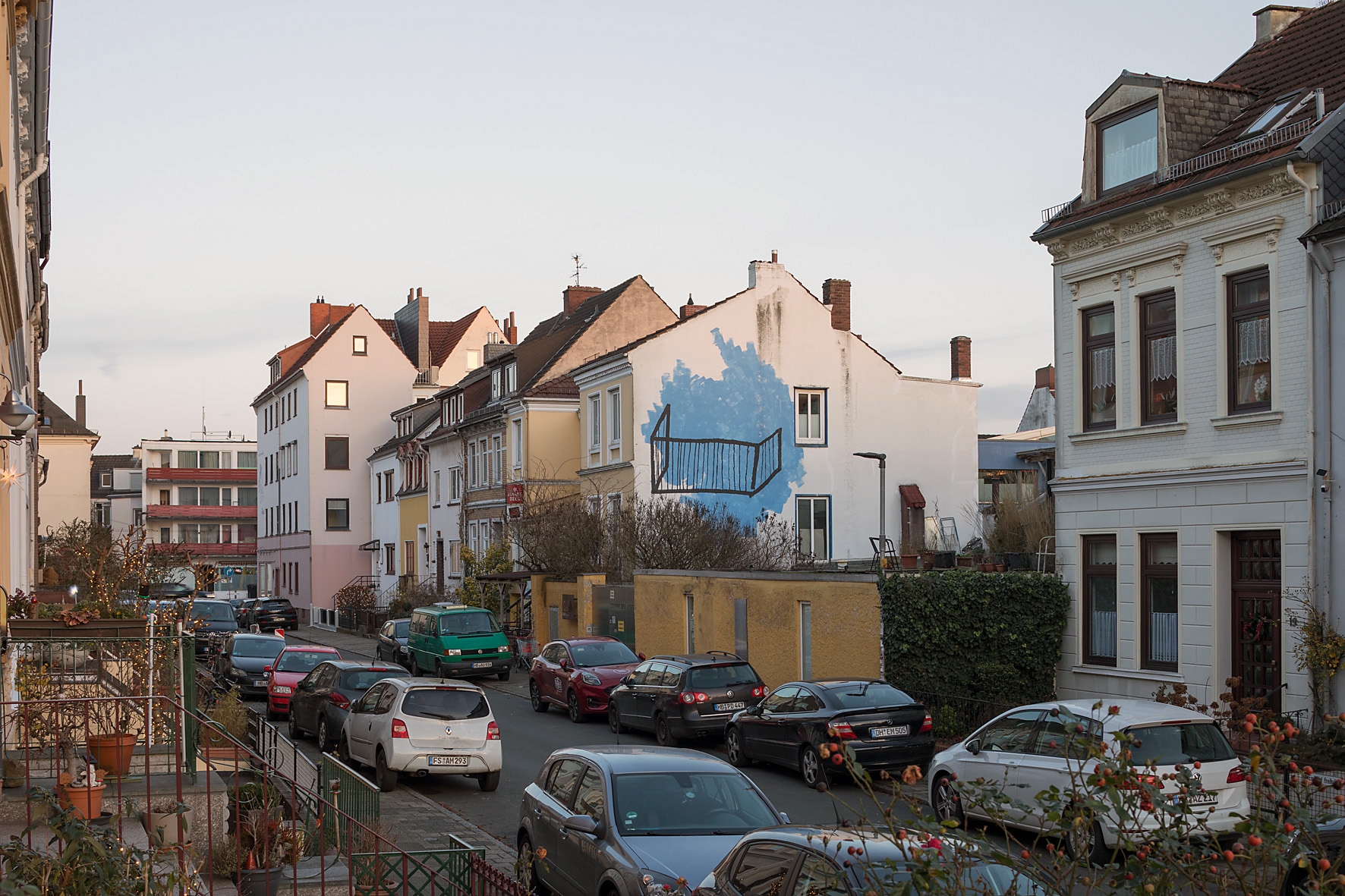 Wandbild Blauer Balkon von Lisa Sinan Mrozinski im innenhof der GaDeWe in Bremen Walle.